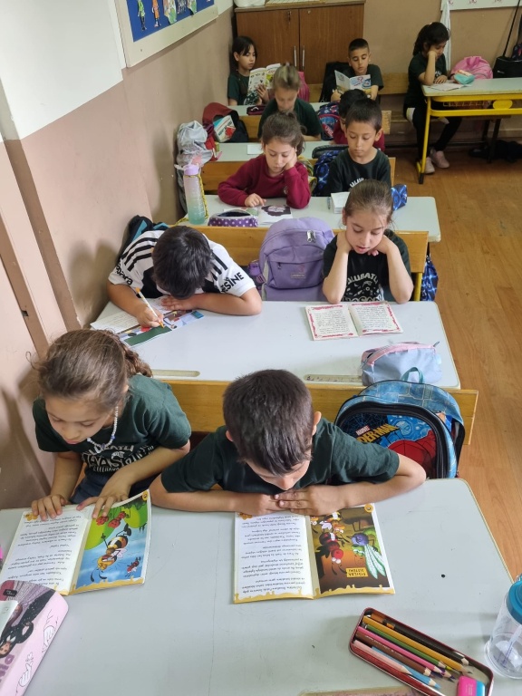 Mart ayı boyunca düzenlenen okuma etkinlikleri kapsamında sınıf içi kitap okuma saatleri ve kitap değerlendirme etkinlikleri gerçekleştirildi. Öğrencilerimiz, seçkin eserlerle buluşarak edebi ve kültürel birikimlerini artırma fırsatı buldular.