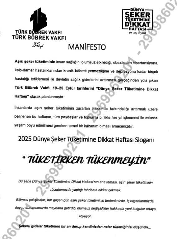 Türk Böbrek Vakfı Dünya Şeker Tüketimine Dikkat Haftası