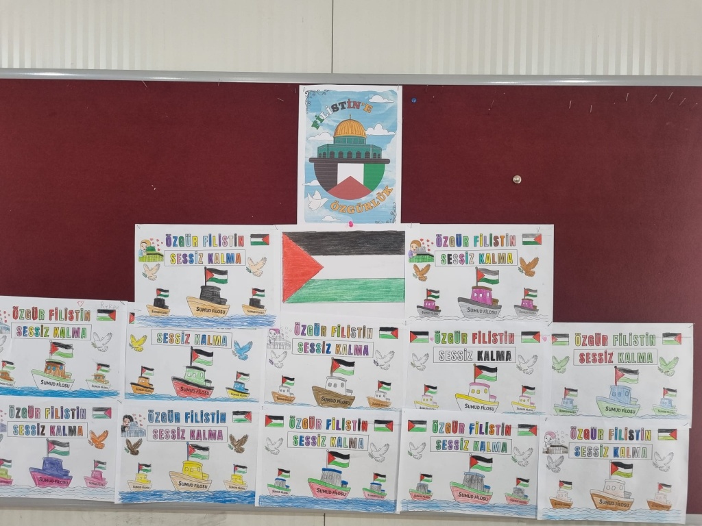 Millî Eğitim Bakanımız Yusuf Tekin imzasıyla 81 ile gönderilen yazı doğrultusunda okulumuzda düzenlenen “Filistin ve Gazze” temalı farkındalık etkinlikleriyle öğrencilerimizin vicdan, adalet gibi değerlerle insan olma sorumluluğunu yaşayarak, yaparak kazanmaları ve “Türkiye Yüzyılı Maarif Modeli”nin “erdem-değer-eylem” yaklaşımıyla eleştirel düşünme becerileri ve sorumluluk bilinci geliştirmeleri amaçlandı.